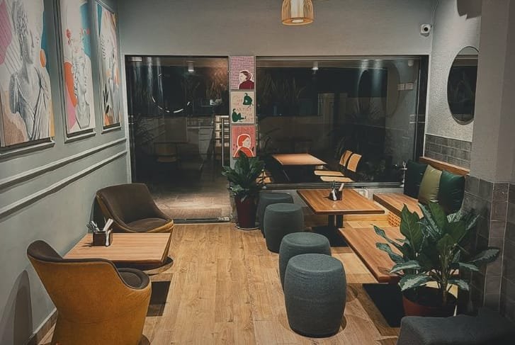 Background café music and a calming ambiance help reduce stress and increase focus. Access to cozy corners for short breaks or informal meetings.